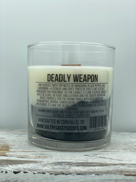 🚨 Warning: Prepare for a sensory adventure so intense, it might leave you questioning if your living room has transformed into a top-secret spy headquarters. Our Deadly Weapon candle isn't just a candle; it's an olfactory experience so bold, it could rival a blockbuster action movie. Caution: May induce an uncontrollable urge to don a tuxedo, speak in cryptic code, and conduct espionage from your couch.