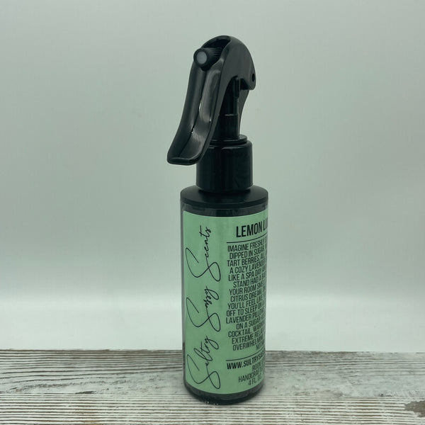 Meet Lemon Lullaby Room Spray – the scent that’s here to tuck your nose in for the sweetest nap ever! Imagine freshly sliced lemons, dipped in sugar, with a kiss of tart berries, all wrapped up in a cozy lavender blanket. It’s like a spa day and a lemonade stand had a baby, and now your room smells like a calm citrus dream. One spritz and you’ll feel like you're drifting off to sleep on a cloud made of lavender pillows, while sipping on a sugar-kissed lemon cocktail. Warning: May induce extreme relaxation and an overwhelming desire to do nothing.