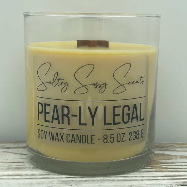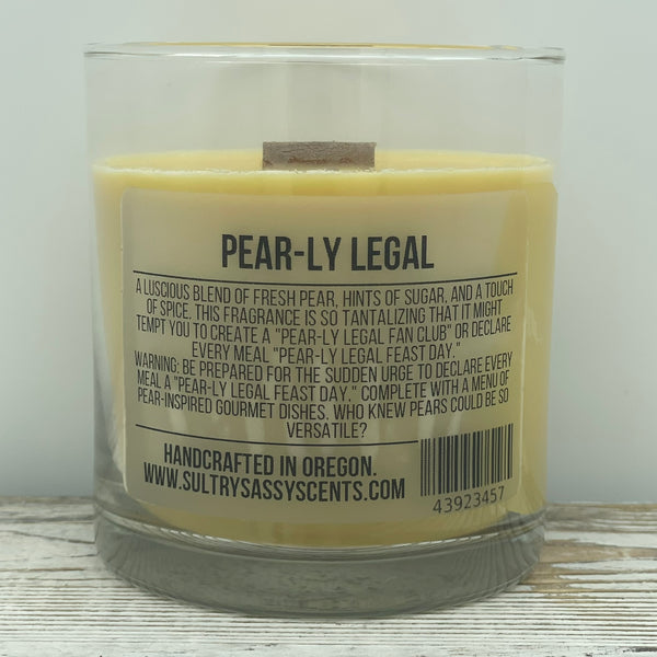 Get ready to experience the mouthwatering delight of our Pear-ly Legal Candle, a luscious blend of fresh pear, hints of sugar, and a touch of spice. This fragrance is so tantalizing that it might tempt you to create a "Pear-ly Legal Fan Club" or declare every meal "Pear-ly Legal Feast Day." Warning: Lighting this candle may lead to cravings for juicy pears and dreams of pear-inspired gourmet meals.